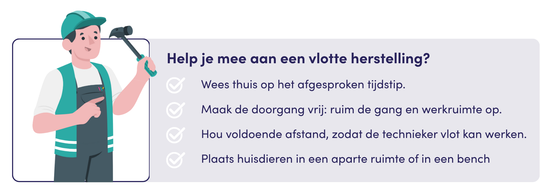 We hebben jouw aanvraag voor herstelling of technische melding goed ontvangen en verwerken deze zo spoedig mogelijk.