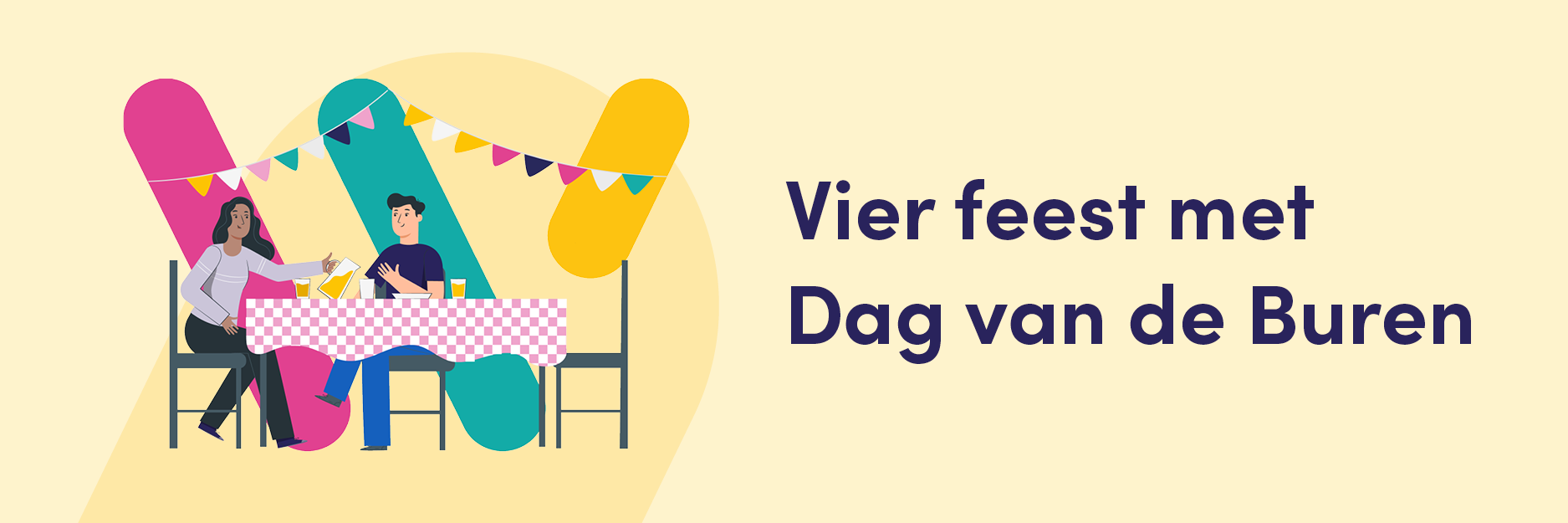 Van woensdag 27 mei t.e.m. woensdag 3 juni 2026 vieren we opnieuw de Dag van de Buren. Dit is het perfecte moment om elkaar beter te leren kennen en samen wat extra leven in je straat te brengen.